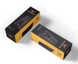 Created a sleek and professional box packaging design for a tech product, focusing on a premium and modern brand identity.